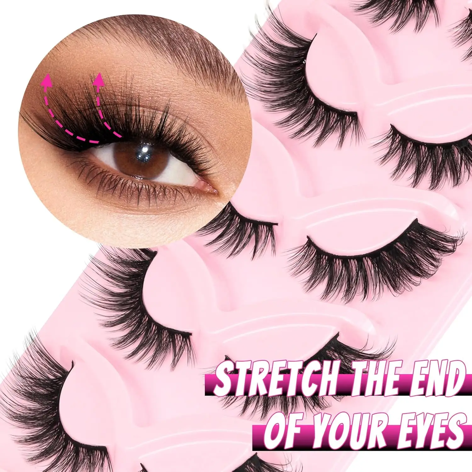 10 Pairs Pack Cat Eye Lashes Faux Mink Eyelashes Crisscross 3D Multilayered False Eyelashes L Curl Fox Eye Lashes